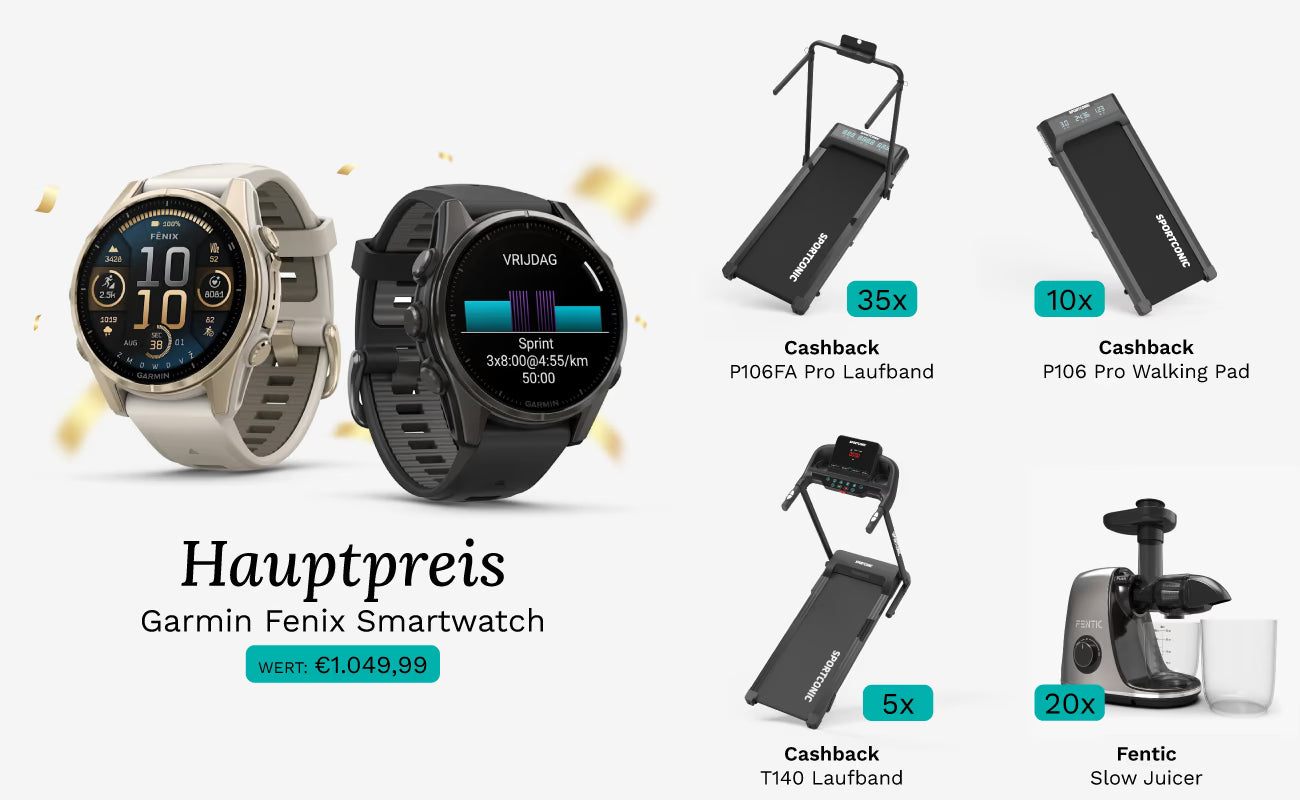 - Hauptpreis: Garmin Fenix 9 Smartwatch im Wert von 1.049,99 € (wahlweise in zwei Farben)
