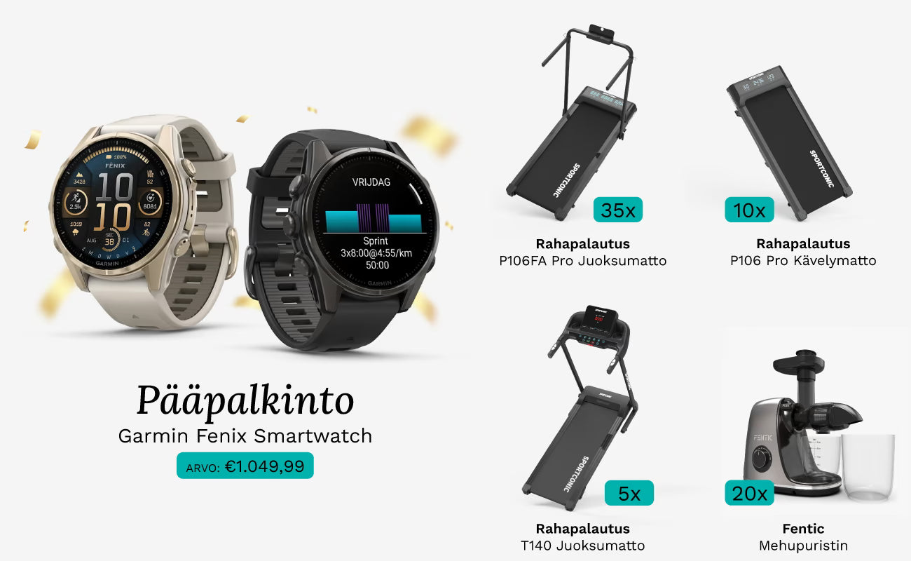 - Pääpalkinto: Garmin Fenix 9 -älykello, arvo 1 049,99 € (valittavissa kaksi väriä)