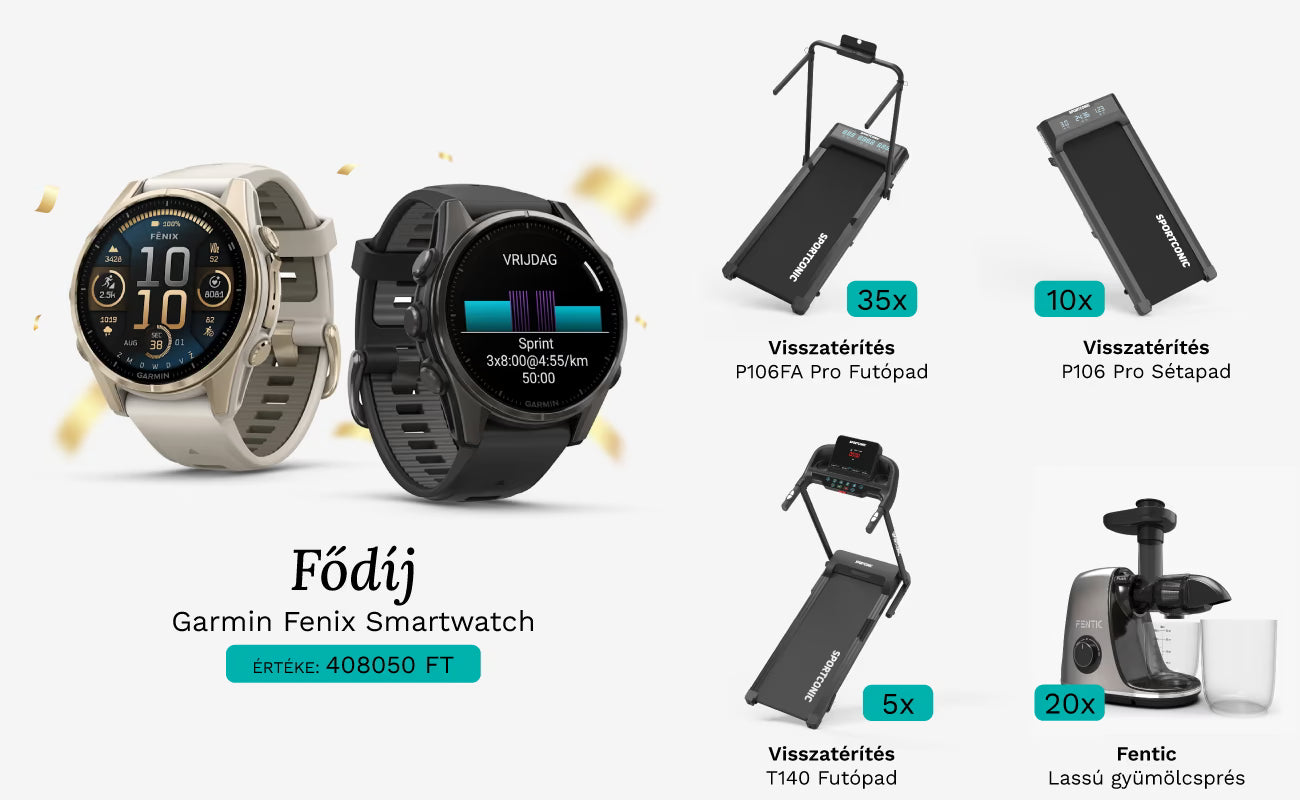 - Fődíj: Garmin Fenix 9 okosóra 408 050 Ft értékben (két szín közül választható)