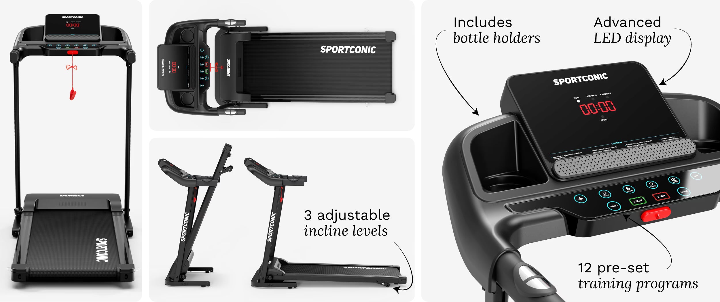 Use the control panel to easily adjust speed and choose from 12 pre-programmed workouts tailored to goals like fat burning, endurance, or interval training.