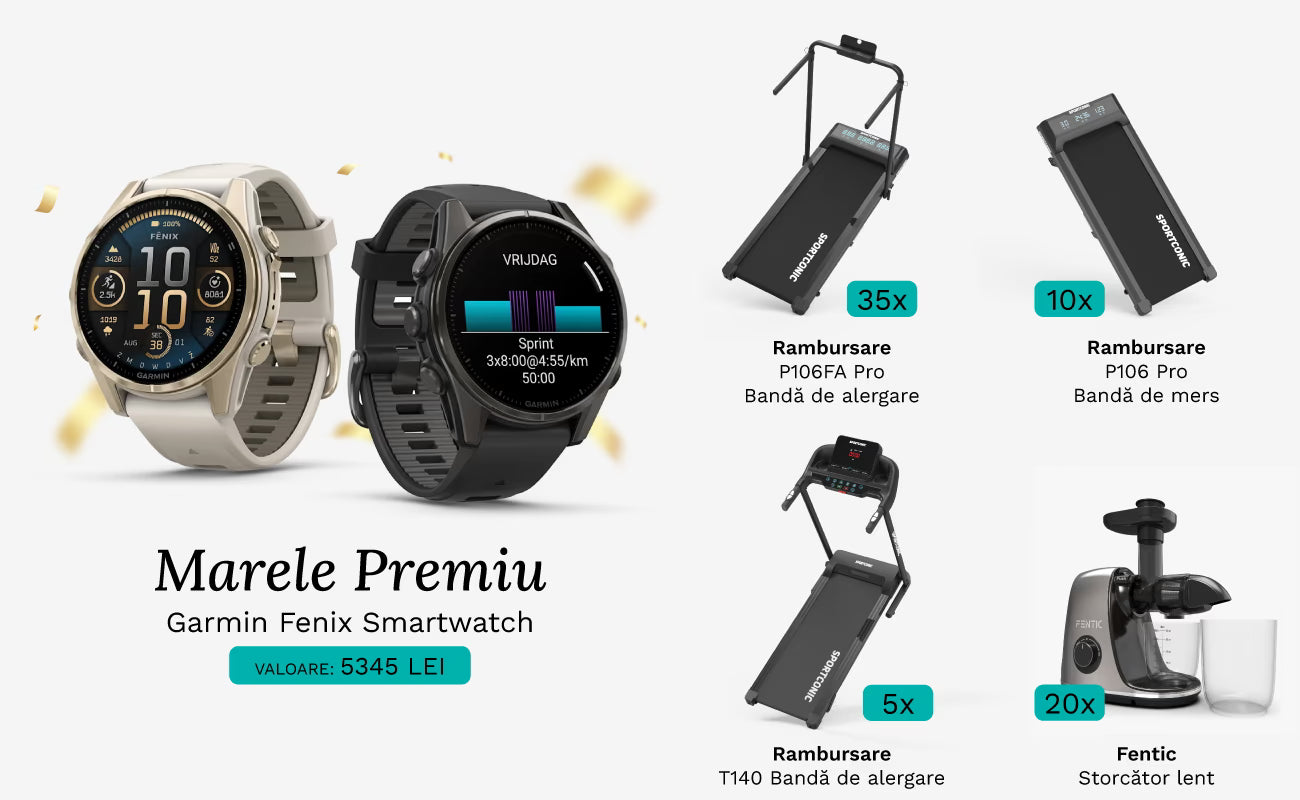- Marele premiu: Smartwatch Garmin Fenix 9 în valoare de 5.345 lei (disponibil în două culori)